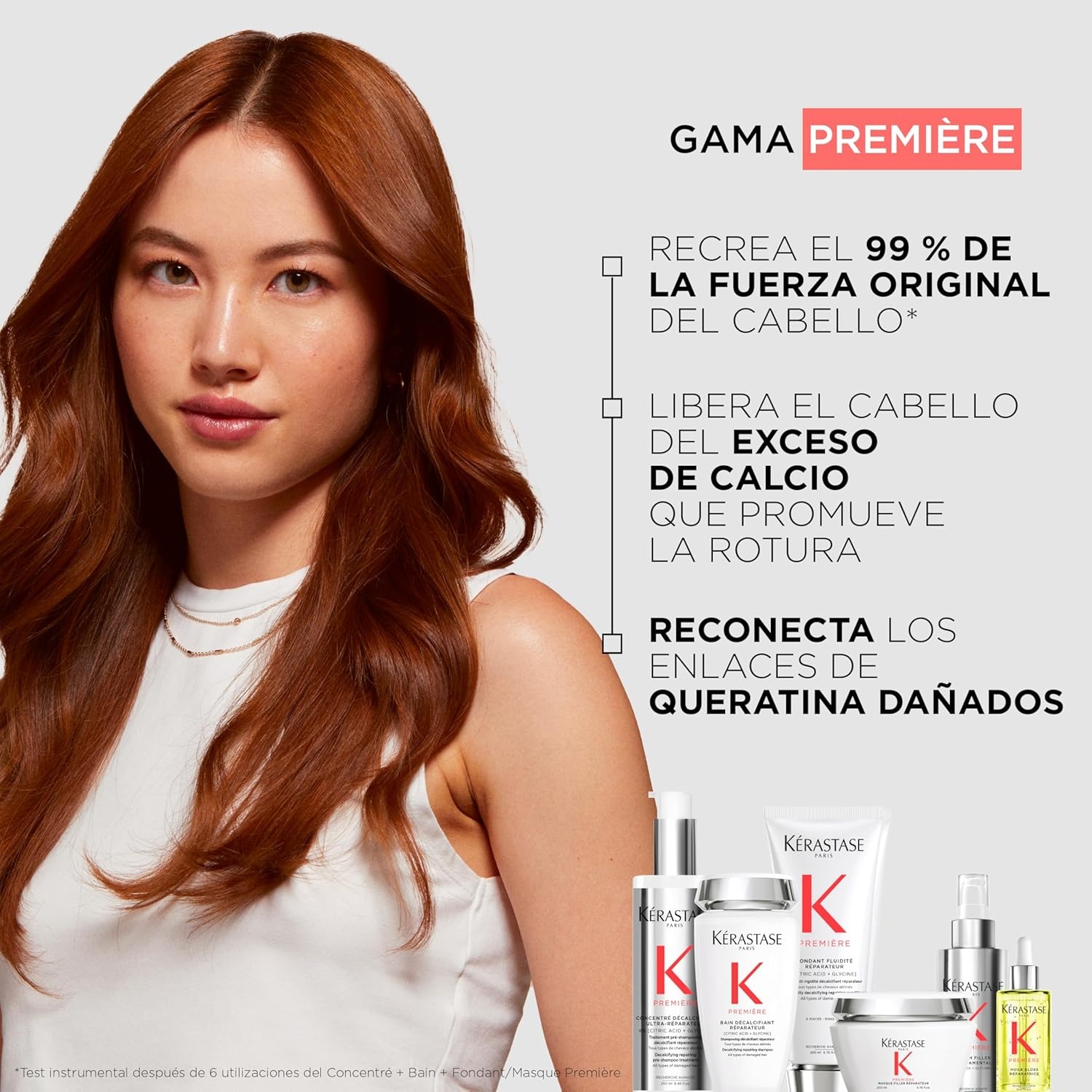 El sérum repara e hidrata la fibra en profundidad, al tiempo que protege el cabello contra el calor hasta 230°C. El cabello recrea el 99% de su fuerza original, dejándolo suave, flexible y fácil de peinar. El encrespamiento se controla durante 72 horas.